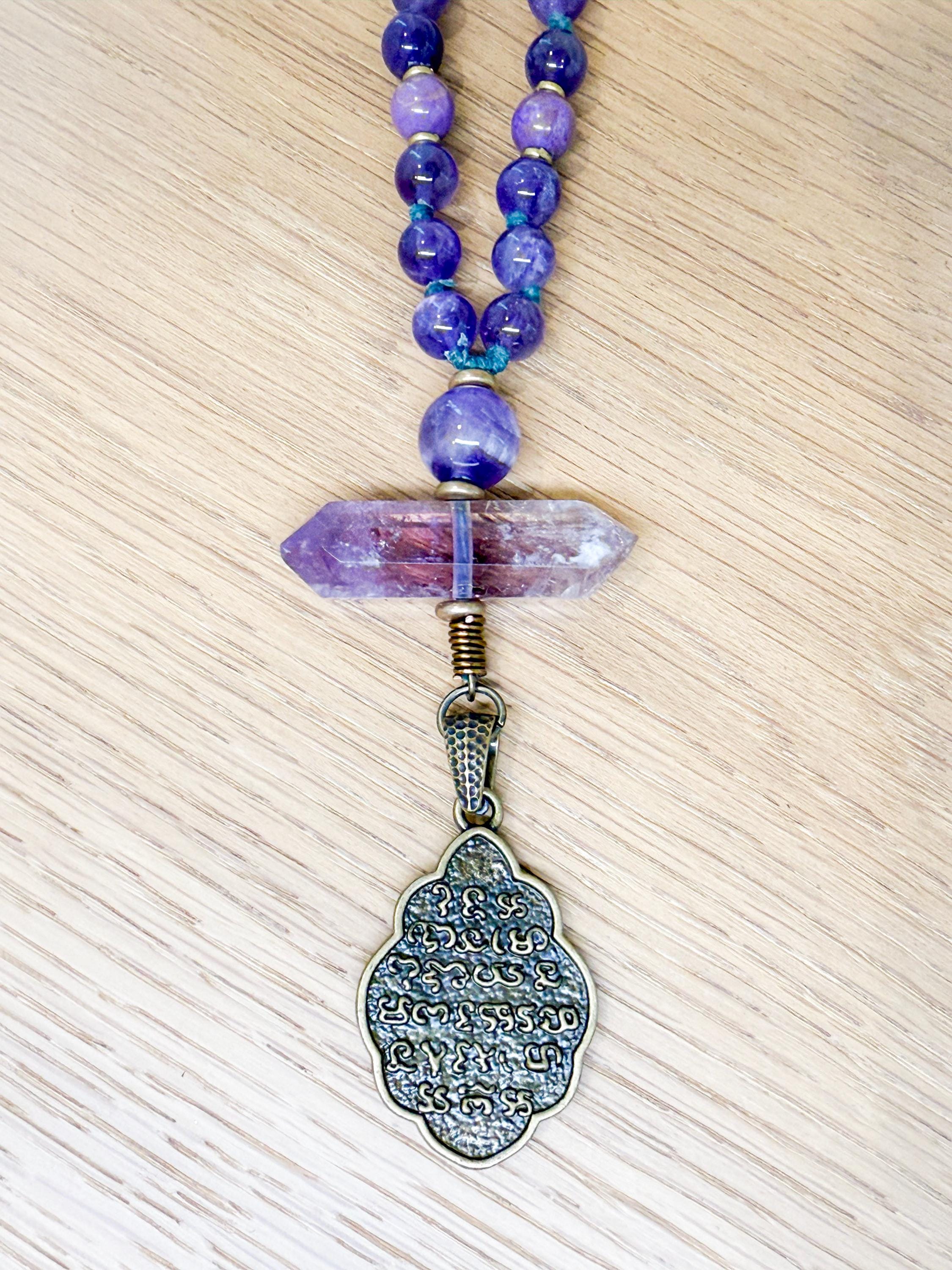Guru Bead: 12mm Amethyst followed by a double-terminated rare Ametrine point from Bolivia